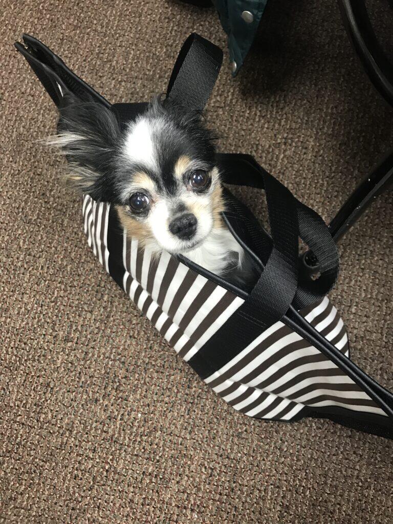 To keep her safe, I bought a dog purse and carried her everywhere for two years. And I mean everywhere.